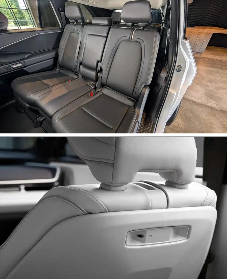 内饰方面,新车配备14英寸悬浮式中控屏与12.3英寸全液晶仪表,支持无线Apple CarPlay和Android Auto。全三排座椅均提供设备充电功能,并可选配全景天幕与64色氛围灯。座椅全系采用SofTex人造皮革包覆,前排座椅加热为标配,前排通风与第二排加热则为选装。全车共设18处储物空间,第三排座椅放平后可提供超过1274升的后备厢储物容积。